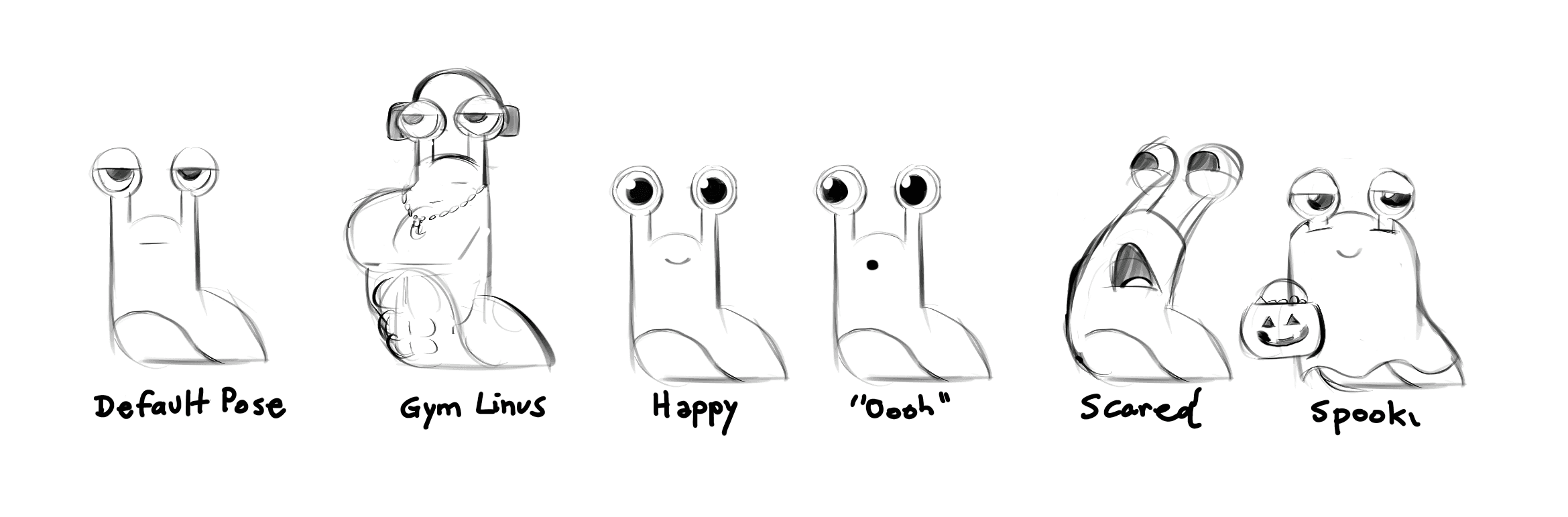 We were given lots of freedom to explore concepts and designs for various UI elements that would carry through the full Linus experience. Linus the Slug ended up stealing the show.